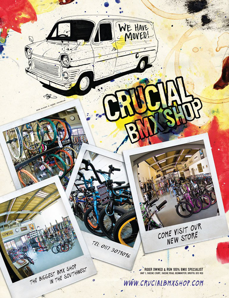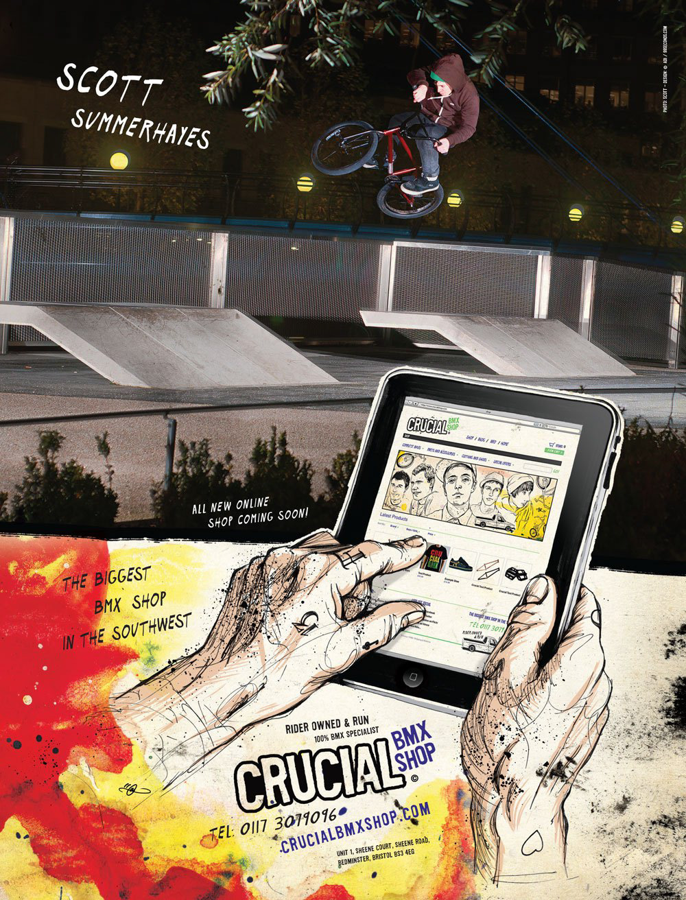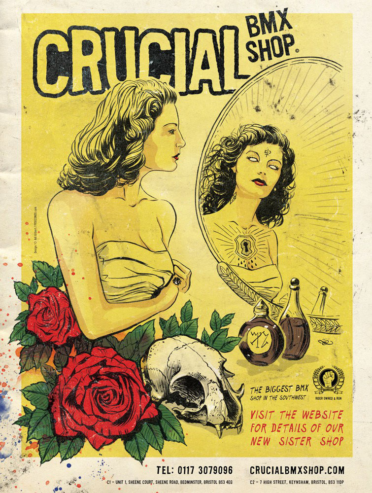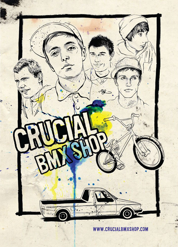 A series of print and online adverts for Crucial BMX. Logo design / illustration etc. Straight outta Bristol. BS3!