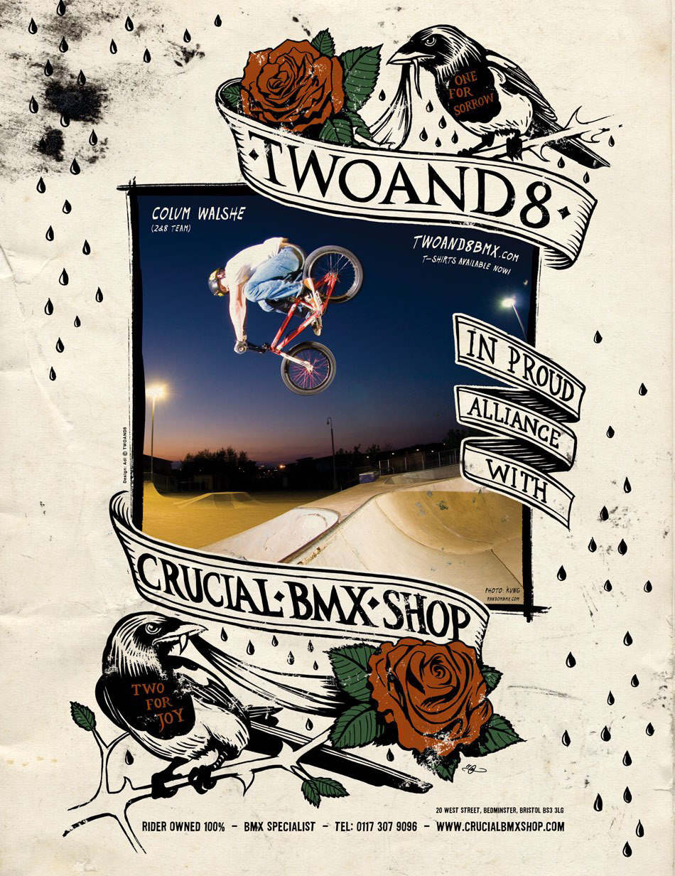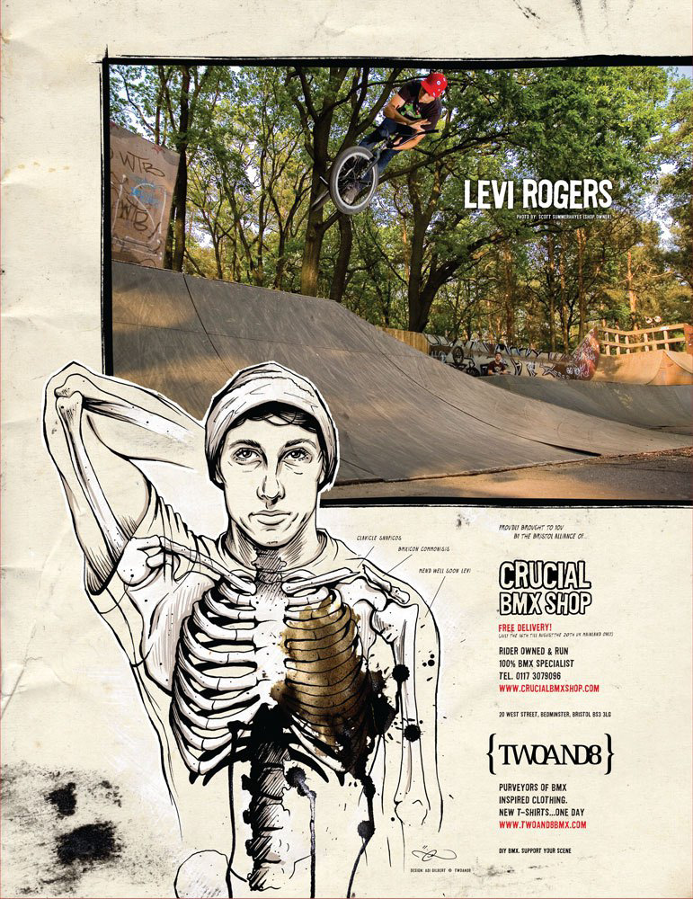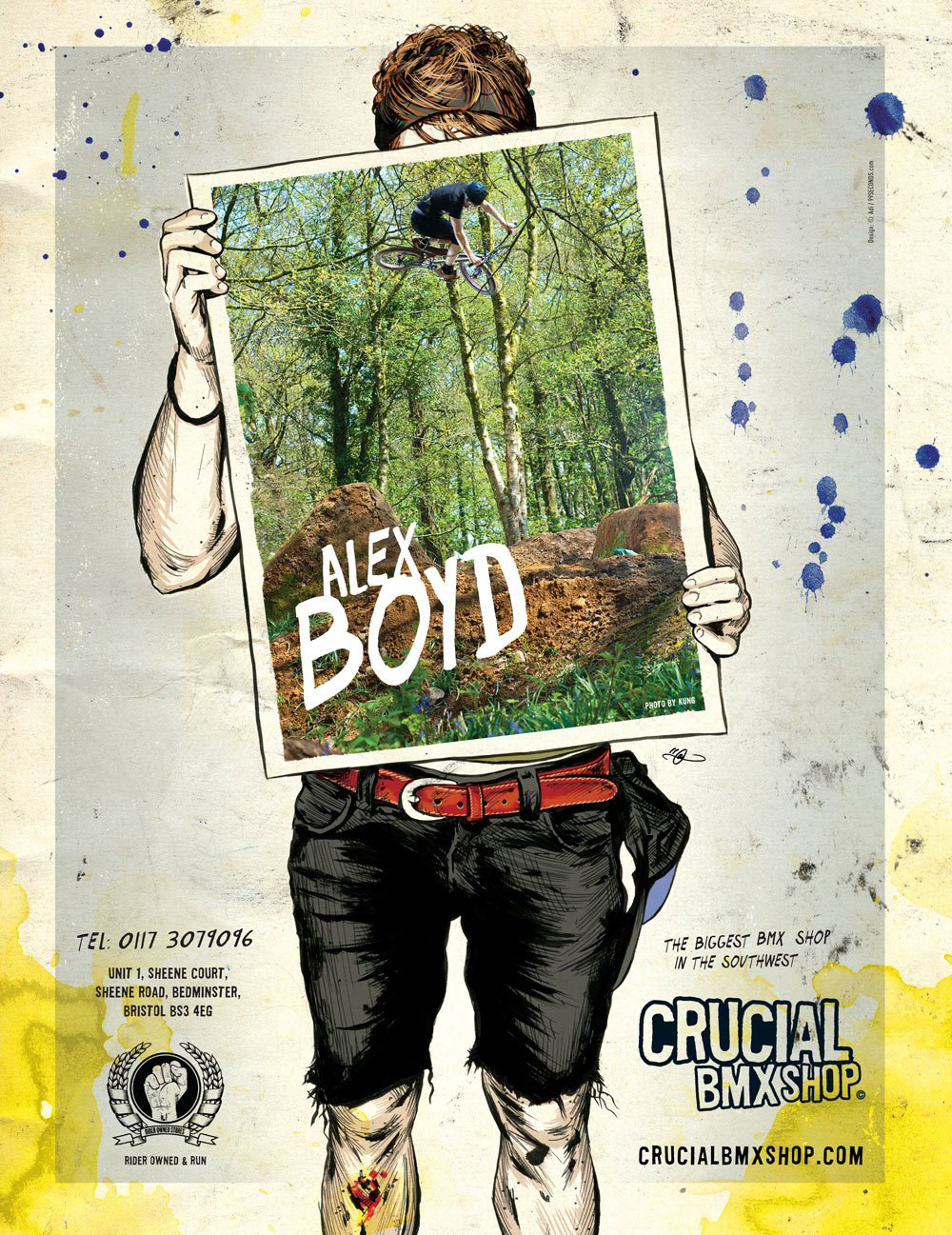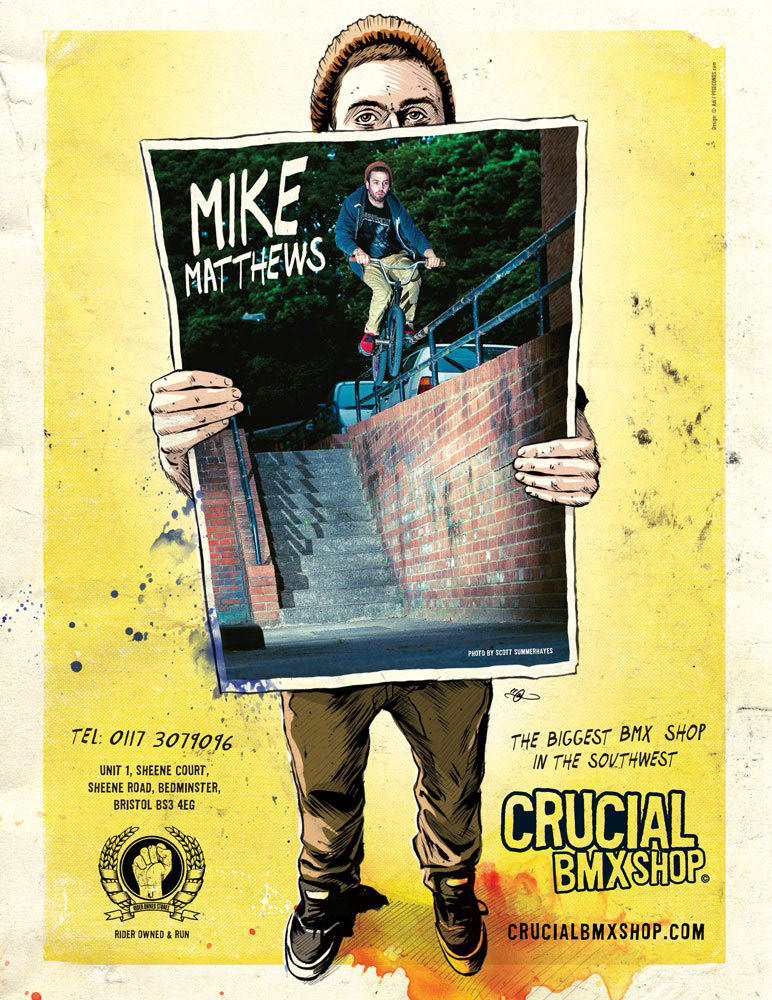 A series of print and online adverts for Crucial BMX. Logo design / illustration etc. Straight outta Bristol. BS3!