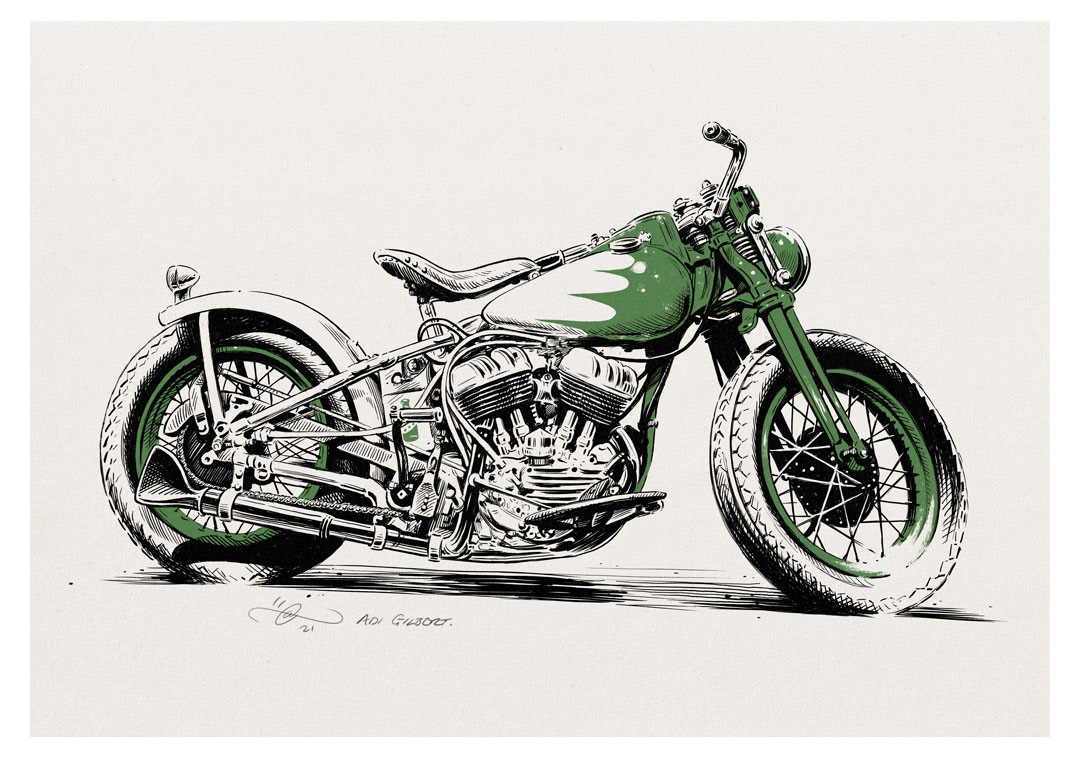 This piece was a private commission for a client who gifted the print to her partner. The bikes owner!