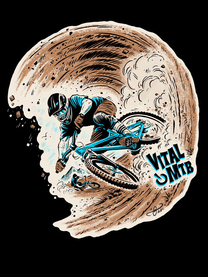 A series of drawings for bike manufacturer Kinesis. Commissioned by Dom Mason at Upgrade Bikes (Now at Mason Cycles), their UK agent, who also did the awesome layouts and accompanying graphics and logos. They were used as the basis for the Decade range, marking the companies 10yr anniversary.