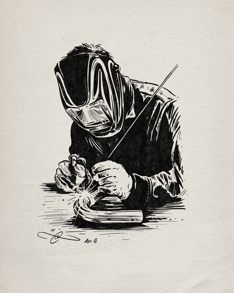 An illustrated Welder element I drew for Motorcycle Missions. An organisation that helps support people with PTSD though motorcycle therapy (building and riding).